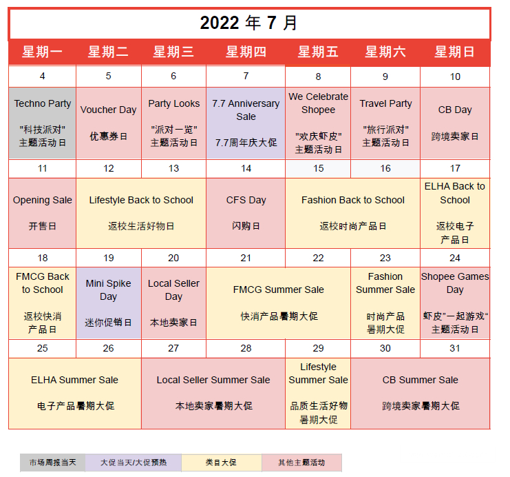 Shopee市场周报 | 墨西哥虾皮2022年7月第1周市场周报近期活动安排 ● 正在进行: -7月4日-"科技派对"主题活动日 ● 即将进行: -7月7日-7.7周年庆大促