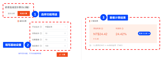 知虾在线定价工具,通过模拟计算商品售卖的各项成本,最大程度得出商品售价等参考值,可以帮助进行商品的定价工作。不用下载,也不用登录,在线即可免费使用。